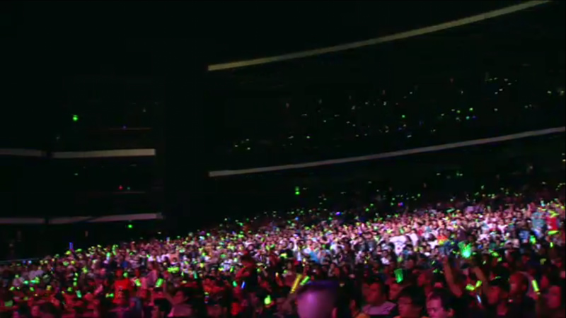 視野角のために両サイドはお客を入れてませんが、ノキアシアター満席です。